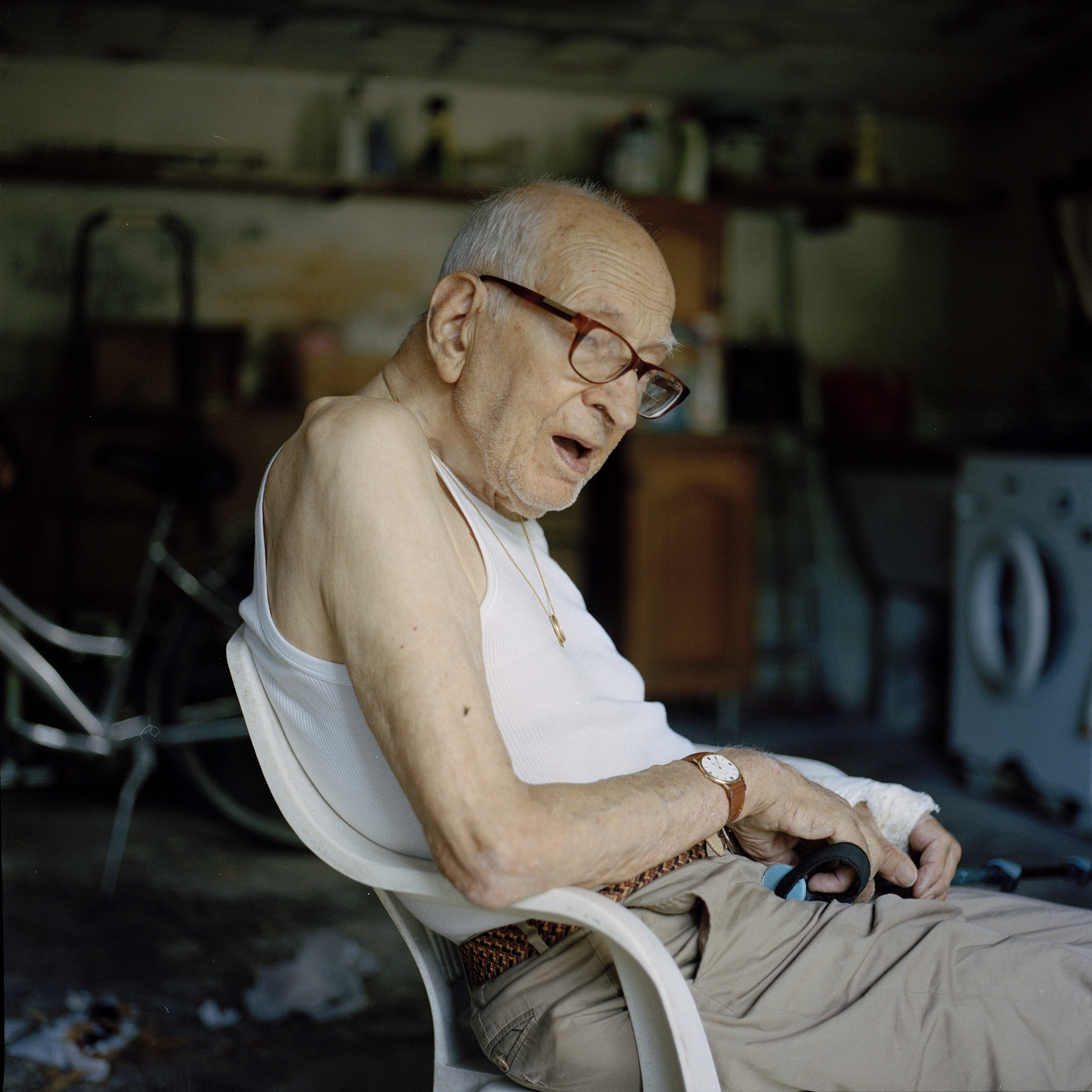 Grandpa has a broken arm so he can't do everything that comes into his head, much